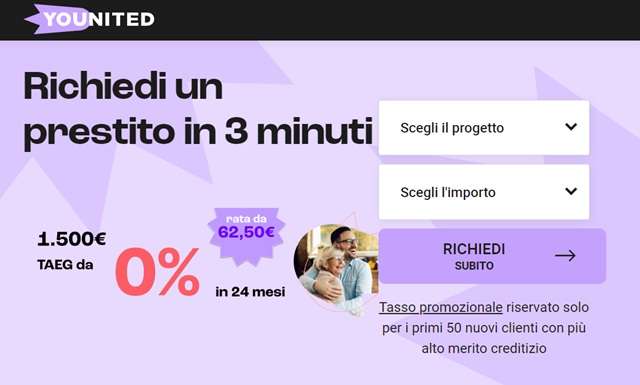 Se hai bisogno di liquidità nel breve termine e stai valutando le varie proposte degli intermediari finanziari, ti segnaliamo la nuova promo “Riparti da zero” di Younited, che consente di ottenere un prestito personale online a tasso zero. Younited Credit è una società finanziaria francese, specializzata in credito istantaneo. Nata nel 2011, in questi anni ha raggiunto il traguardo dei 3 miliardi di euro di prestiti in Europa.