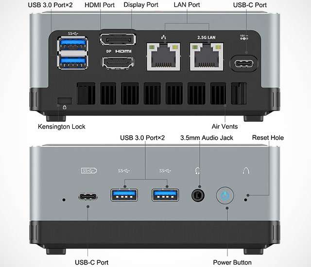Diamo uno sguardo alle principali specifiche tecniche incluse nel piccolo case del computer: processore Intel Core i5-8259U affiancato da GPU Intel Iris Plus 655, 16 GB di RAM DDR4 e SSD PCIe M.2 da 256 GB per lo storage (espandibile tramite HDD o SSD da 2,5 pollici), uscite video HDMI e DisplayPort con supporto alla connessione simultanea a tre monitor (sfruttando anche USB Type-C) e alla risoluzione 4K, quattro porte USB 3.0 Type-A, due Type-C, doppio slot Ethernet, jack audio da 3,5 mm, WiFi 6 e Bluetooth 5.1. Tutti gli altri dettagli sono reperibili nella scheda del prodotto.
