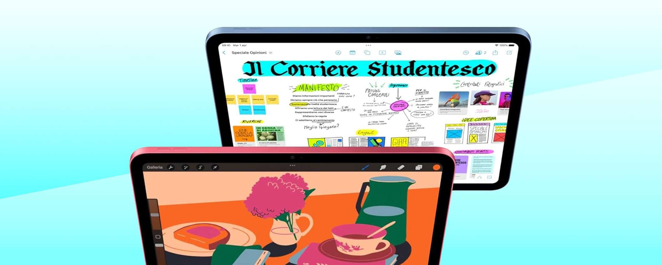 Approfitta del primo sconto sulla versione Wi-Fi da 256 GB del nuovo iPad e acquistalo al prezzo di 509 euro. Scegli la colorazione che preferisci tra Argento, Blu, Rosa e Giallo, la spesa finale non cambia.