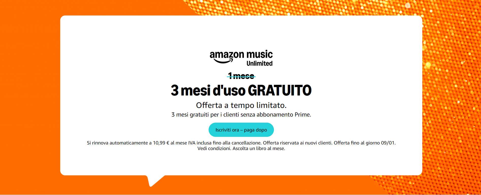 Amazon Music Unlimited è il servizio di musica in streaming del colosso dell’e-commerce che adesso ti propone un’opportunità straordinaria. Se non sei iscritto a Prime, infatti, puoi usufruire di tre mesi di prova completamente gratuiti, con accesso senza limiti e tutti i vantaggi che avresti sottoscrivendo l’abbonamento. Avrai la libertà di decidere per quanto tenerlo e se disdire al termine della prova senza costi aggiuntivi.
