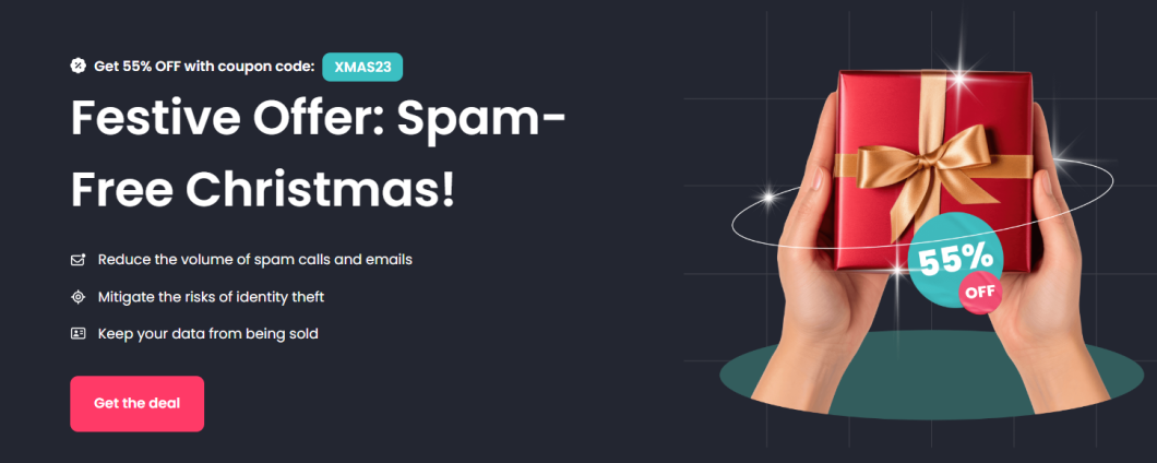 Oggi è possibile usufruire di un vantaggioso sconto del 55% sul piano annuale di Incogni grazie al coupon esclusivo XMAS23.