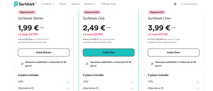 Ora puoi attivare Surfshark VPN a un prezzo straordinario di 1,99€ al mese con il piano biennale, grazie a uno sconto dell’87%. Inoltre, avrai 3 mesi gratuiti extra. Per approfittare della promo in corso basta andare sul sito di Surfshark.