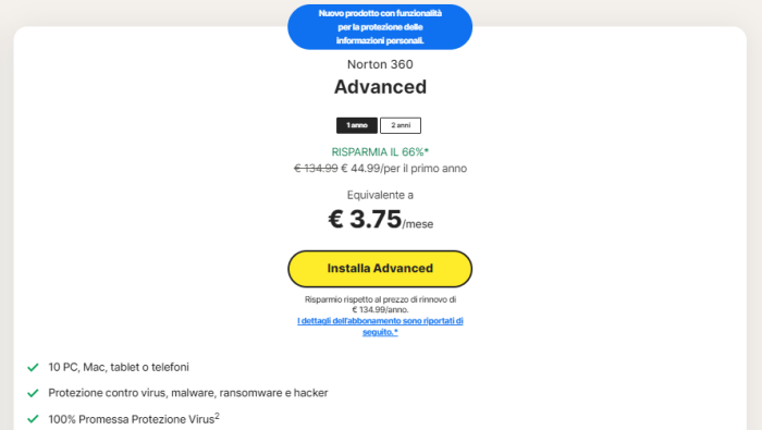 Per un periodo limitato, puoi proteggere l’attività online della tua famiglia a un prezzo speciale: vai sul sito di Norton e attiva Norton Norton 360 Advanced con il 66% di sconto, pagando solo 3,75€ al mese per il primo anno. Un’opportunità imperdibile per garantire ai tuoi figli una navigazione sicura e responsabile, senza preoccupazioni.