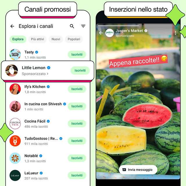 Queste funzionalità ti aiutano a trovare aziende e canali con cui connetterti direttamente su WhatsApp. I tuoi messaggi personali sono crittografati end-to-end e protetti.