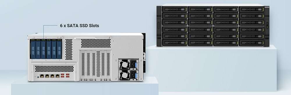 Dotato di 24 vani per SSD U.2 NVMe Gen 3 x4, il NAS è in grado di offrire prestazioni straordinarie, raggiungendo fino a 661K IOPS e 245K IOPS, rispettivamente in lettura e scrittura random 4K, il tutto mantenendo una latenza ultra-bassa.