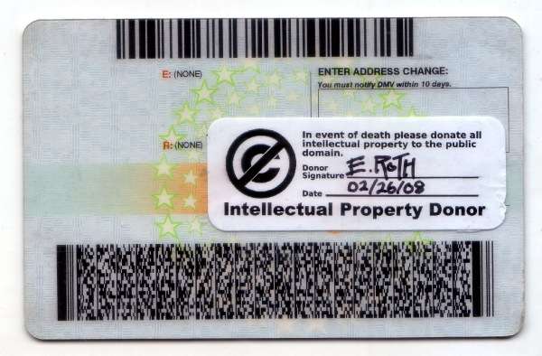 “Perché far sì che tutte le tue idee muoiano con te? L’attuale legislazione sul Copyright impedisce a tutti di sfruttare la tua creatività per 70 anni dopo la tua morte. Continua a vivere collaborando con gli altri, fai una donazione di proprietà intellettuale. Donandola al pubblico dominio puoi promuovere il progresso della scienza e delle arti (cfr. Costituzione USA). Assicurati che la tua creatività ti sopravviva, dona subito”.