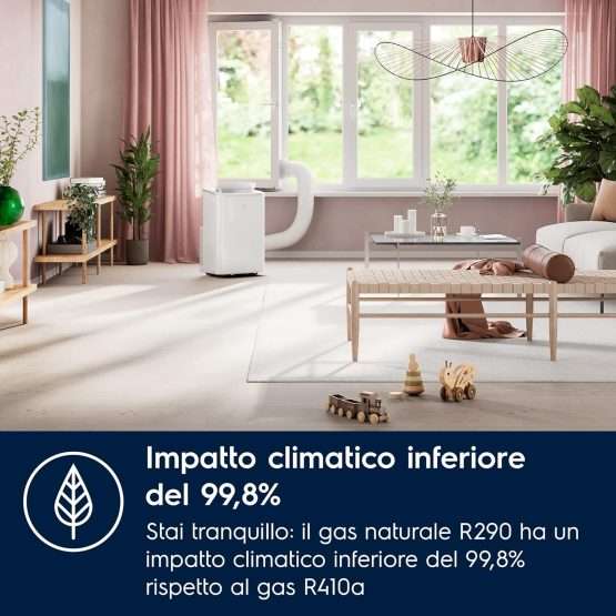 Il condizionatore portatile Comfort 600 di Electrolux è una soluzione intelligente ed efficiente per eliminare il caldo e l’afa sia dalla tua casa che dal tuo ufficio. Grazie alle sue dimensioni compatte e all’assenza di un motore esterno, puoi metterlo ovunque e spostarlo anche di stanza e in stanza per raffrescare tutto l’ambiente in modo semplice e veloce. Funziona in modo elementare: lo accendi e lui inizia a fare il suo dovere. L’unica accortezza? Ha un tubo che va sistemato fuori la finestra per permettergli di eliminare l’aria calda. Tuttavia non occorre far tagliare il vetro visto che esistono sistemi intelligenti come questo qui su Amazon.