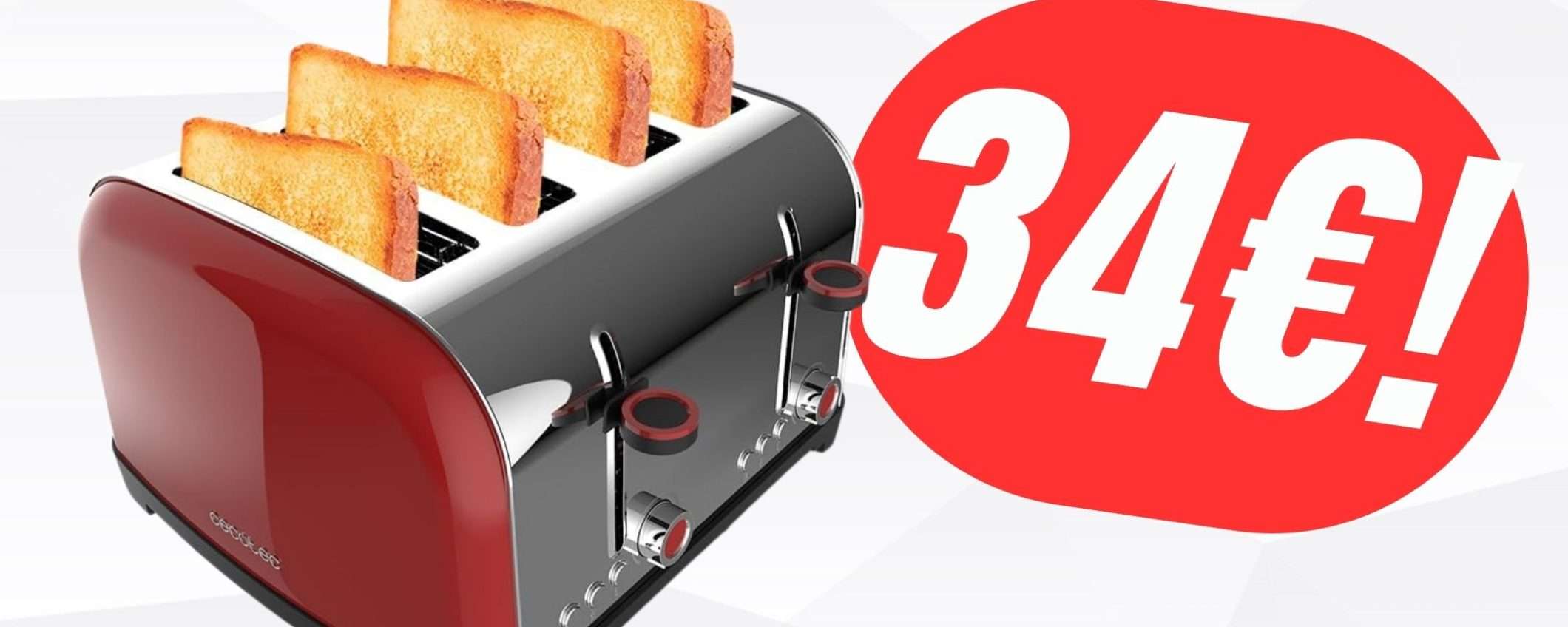 L’offerta che ti stiamo per proporre ha come protagonista un tostapane davvero particolare. Questo di Cecotec, infatti, non solo ha una potenza di ben 1700W ma, grazie alle 4 fessure, ti consentirà di preparare pane tostato per tutta la famiglia! Il suo prezzo, ora che è scontato del 30%, arriva a soli 34,90€!