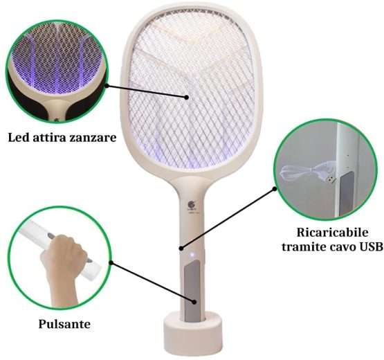 Per fortuna con un singolo acquisto rimedi a tutto e non utilizzi neanche prodotti tossici per te, l’ambiente e ancora, per eventuali animali che hai in casa. Si tratta di questa racchetta ricaricabile che è comodissima, ha anche la sua base di appoggio ed è semplicissima da utilizzare.