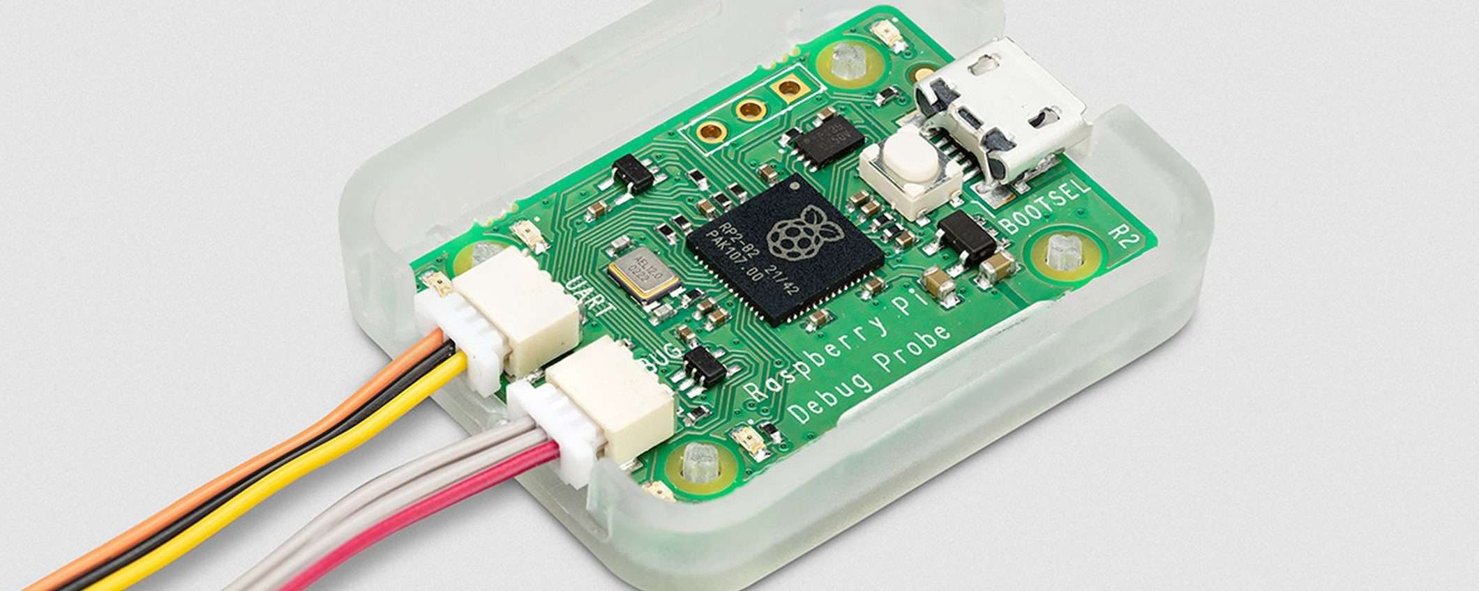 Il Raspberry Pi Debug Probe è un kit che comprende una piccola scheda (22×32 millimetri) con il microcontroller RP2040, due bridge (USB to SWD e USB to UART) e una porta USB per il collegamento al computer host (Windows, macOS o Linux), una custodia in plastica trasparente, un cavo USB e tre cavi di debug a tre pin. Il kit è progettato specificamente per Raspberry Pi Pico, Pico W, Pico H e Pico WH, ma è compatibile con qualsiasi microcontroller ARM basato su RP2040.