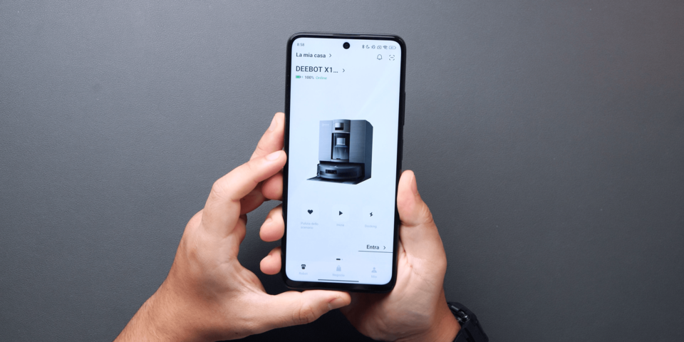 Dal punto di vista estetico, Ecovacs ha scelto linee sobrie e materiali che si inseriscono facilmente in diversi ambienti. Il robot, con un profilo di 9,8 cm, riesce a passare sotto la maggior parte dei mobili, garantendo una copertura ampia e uniforme.