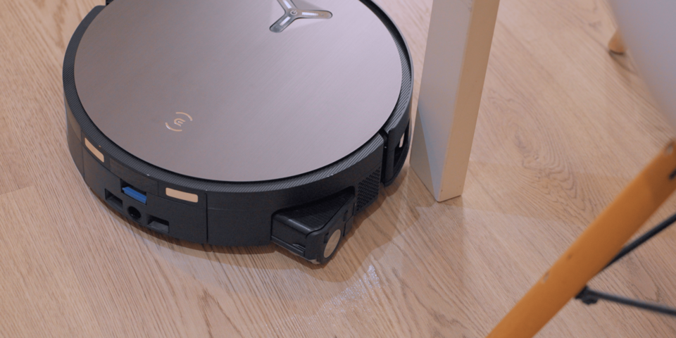 Questo dettaglio tecnico ha un impatto concreto nella vita quotidiana: spesso i robot non riescono a raggiungere bene le zone a ridosso dei battiscopa, lasciando un piccolo bordo di sporco. L’X11, invece, riesce ad avvicinarsi di più e a garantire una copertura uniforme. Le due ruote in gomma che accompagnano il movimento del rullo assicurano che la pressione resti costante, evitando strisce irregolari.