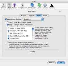 | La sincronizzazione di musica, foto e video passa sempre e comunque attraverso iTunes. È possibile caricare solo le foto ottimizzate oppure anche le versioni originali ad alta risoluzione. |