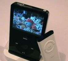 Grazie al dock e al telecomando possiamo collegare l’iPod al televisore. La qualità dei video sulla TV è più elevata di quanto non ci si aspetterebbe: i video in MPEG-4 possono infatti essere memorizzati anche a risoluzioni superiori a quelle consentite dal display dell’iPod: il limite è dato dal numero complessivo di pixel visualizzabili, che sono 230.400 (ciò consente di raggiungere risoluzioni di 480 x 480 o 720×320 punti, tutte a 30 FPS). |