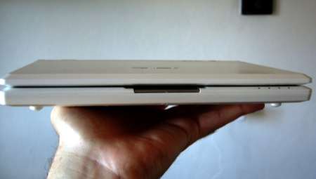 Ed ecco il cucciolo di Asus. Le sue dimensioni ( 22,5 x 16, 5 x 3,5 cm ) e il suo peso ( 920 grammi ) consentono di tenerlo comodamente in un mano, ma per utilizzarlo è d’obbligo appoggiarlo su di un tavolo o sulle ginocchia. Non è certo un palmare, ma come gli altri subnotebook con schermo sotto i 10 pollici può trovare tranquillamente posto in una ventiquattrore.