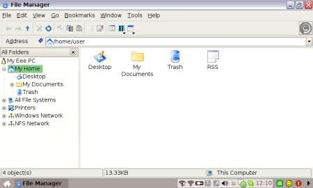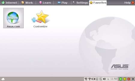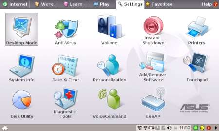 Invece della tradizionale interfaccia Windows-like di KDE, Eee PC adotta un desktop privo di menù start e suddiviso in schede: ciascuna scheda è dedicata ad una categoria di applicazioni, tool e servizi.