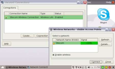 Qui è possibile vedere i due principali tool di configurazione delle reti: il primo, Network Connections , è dedicato alla creazione e alla gestione di tutti i principali tipi di connessione (dial-up, GSM/UMTS, DSL, LAN, VPN ecc.); il secondo, Wireless Networks , mostra invece tutte le connessioni WiFi a portata di segnale. Nel nostro caso il sistema è stato in grado di rilevare correttamente il router WiFi dell’ufficio e utilizzarlo automaticamente per la navigazione in Internet.