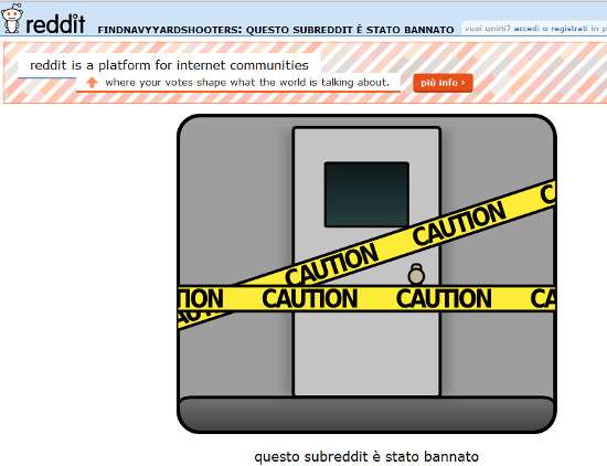 È stato chiuso dai responsabili di Reddit per evitare una nuova caccia alle streghe tra i vasti meandri digitali della community social: il subreddit Find Navy Yard Shooters non farà convergere gli utenti della piattaforma statunitense che abbiano intenzione di postare informazioni personali sui presunti autori della strage consumatasi al Navy Yard , il cantiere della Marina militare di Washington.
