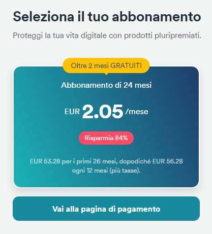 È un’offerta super conveniente su cui viene applicata comunque la garanzia di rimborso di 30 giorni: questo significa che avrai un mese di tempo per provare i servizi di Surfshark e poi decidere se proseguire o avere il rimborso integrale.