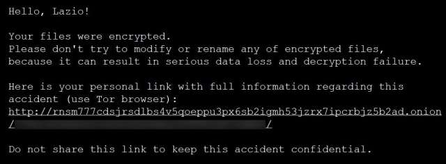 Il link punta ad un sito nel dark web che permette di contattare gli autori dell’attacco. Al momento non risulta né il furto di dati né una richiesta di riscatto. RansomEXX è stato utilizzato per eseguire numerosi attacchi in passato, tra cui quelli contro la Corte di Giustizia del Brasile, il Dipartimento dei Trasporti del Texas e Konica Minolta.