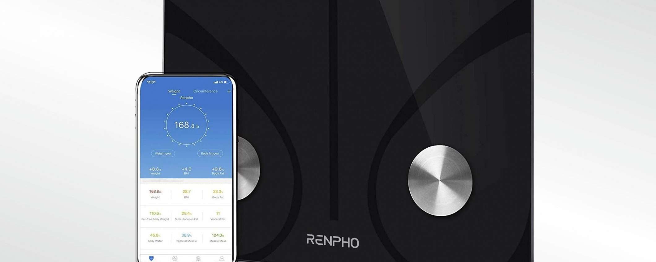 La bilancia professionale impedenziometrica di RENPHO permette di sincronizzare il dispositivo con app quali Samsung Health, Apple Health, Fitbit o Google Fit, utilizzabile peraltro anche su Apple Watch. Una volta saliti sul piano di pesata, la bilancia valuta tutti i parametri che è in grado di computare e restituisce 13 dati: