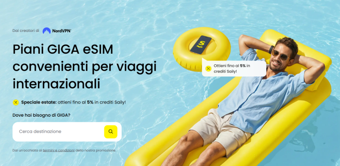 Se hai in programma un viaggio oltre i confini europei, non devi più preoccuparti delle spese extra per il traffico dati. Grazie a Saily, la eSIM firmata NordVPN, puoi navigare in mobilità in oltre 200 Paesi, senza bisogno di cambiare SIM fisica e con la comodità di gestire tutto da un’unica scheda virtuale.