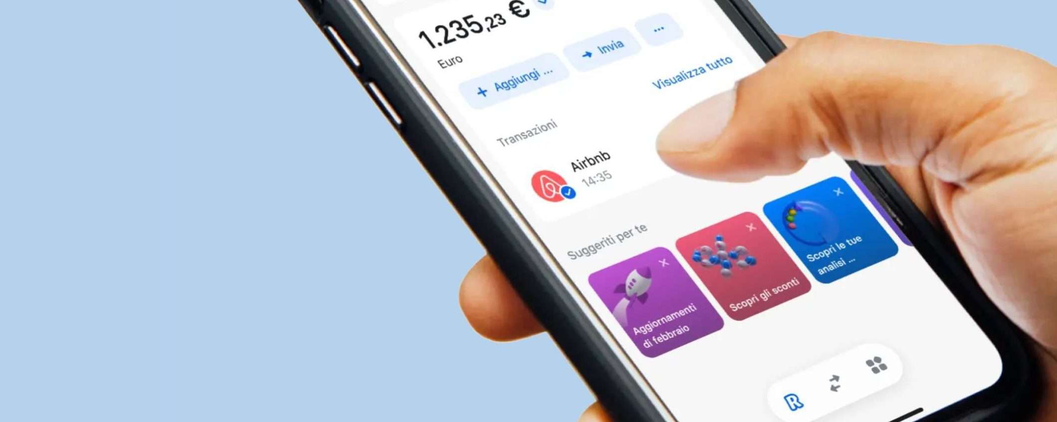 Revolut offre un conto e un’app per la gestione delle finanze personali, mettendo a disposizione numerosi servizi a partire dai trasferimenti di denaro in tempo reale, alle analisi delle spese, fino alla possibilità di effettuare investimenti in criptovalute e azioni.