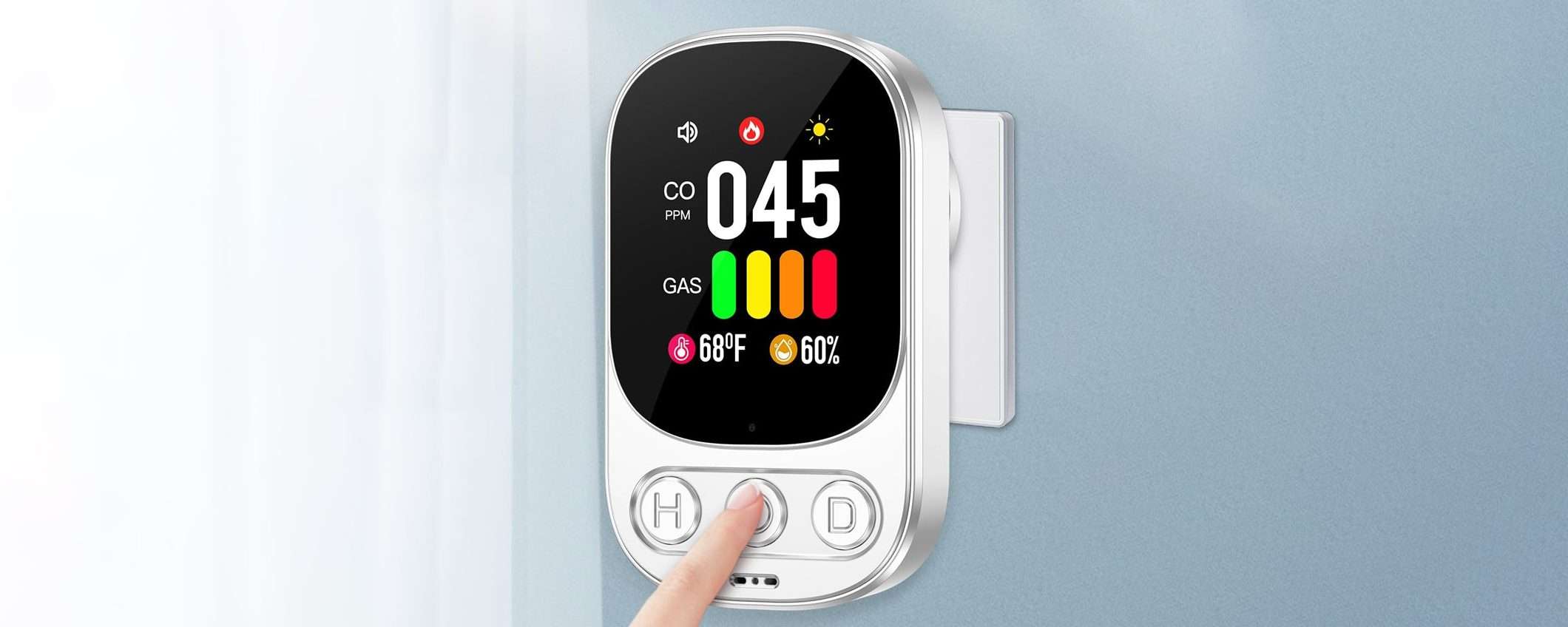 È in grado di rilevare la presenza nell’aria di gas pericolosi come metano, propano, butano ed etano, in caso di perdite o anomalie degli impianti, oltre al CO. Impiega sensori basati su reazioni elettrochimiche e semiconduttori per un monitoraggio preciso e costante (lo effettua ogni due secondi) con validità fino a cinque anni. Sulla parte frontale ha un display LCD da 2,1 pollici a colori che mostra tutti i valori misurati, permettendo di selezionare tra °C e °F per la temperatura. Inoltre, è certificato per la conformità agli standard europei EN 50291 e EN 50194. Dai un’occhiata alla scheda del prodotto per saperne di più.
