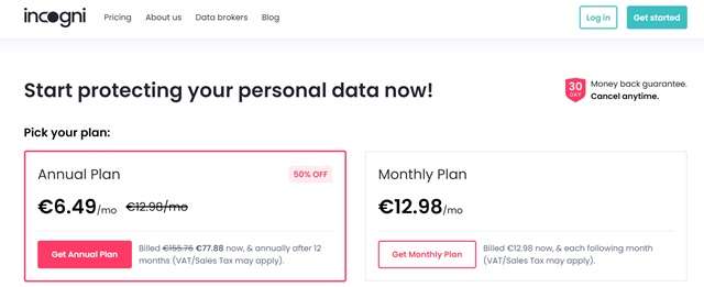 Il piano annuale di Incogni è in offerta a 6,49 euro al mese invece di 12,98 euro, per effetto del 50% di sconto rispetto al prezzo di listino. L’offerta terminerà tra poco.