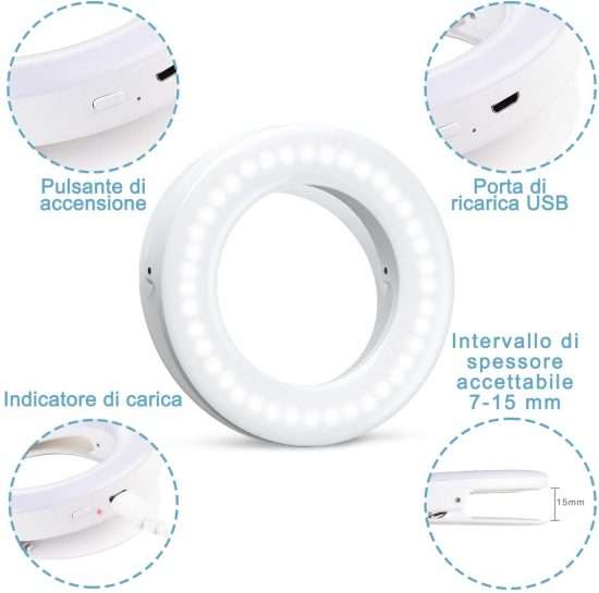 Grazie alla sua forma a pinza, la agganci allo smartphone e non ti preoccupi più di niente. È capace di avere tre livelli di luminosità per offrirti il massimo della comodità. In più selezioni la colorazione che più aggrada e quindi tra bianco caldo, bianco freddo e bianco naturale.