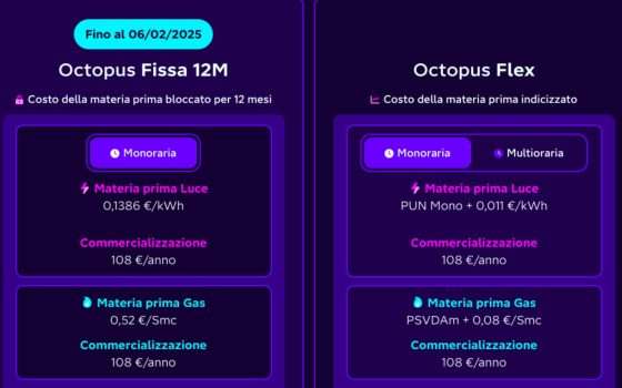 Con Octopus Energy Italia, hai il pieno controllo della tua fornitura senza sorprese e con il massimo rispetto per l’ambiente. Per conoscere l’offerta completa di Octopus Energy clicca qui.