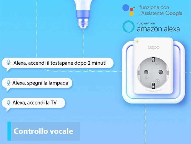 Si tratta di una presa intelligente (2.300 W 10 A) che si interfaccia con le applicazioni su smartphone o con smart speaker e smart display. Ci puoi collegare la macchina del caffè così da trovarlo pronto al mattino non appena ti svegli, ma anche il tostapane, una lampada o il televisore. Sul lato è presente un pulsante on-off per l’accensione o lo spegnimento manuale. Tutti gli altri dettagli nella descrizione completa.