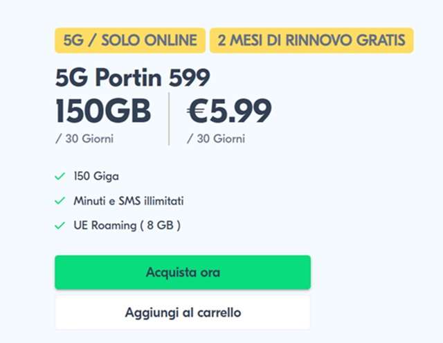 La maggior parte degli operatori offre Giga in 4G, non il massimo forse per quanti oggi sono abituati a navigare alla velocità del 5G. Le eccezioni però esistono: tutti coloro che scelgono di passare a Lyca Mobile, indipendentemente dal loro operatore di provenienza, possono attivare l’offerta da 150 Giga su rete 5G Vodafone, più minuti e SMS illimitati a 5,99 euro al mese. Tra le altre cose, la promozione include anche 2 mesi di rinnovo gratuiti e l’attivazione online a zero costi.