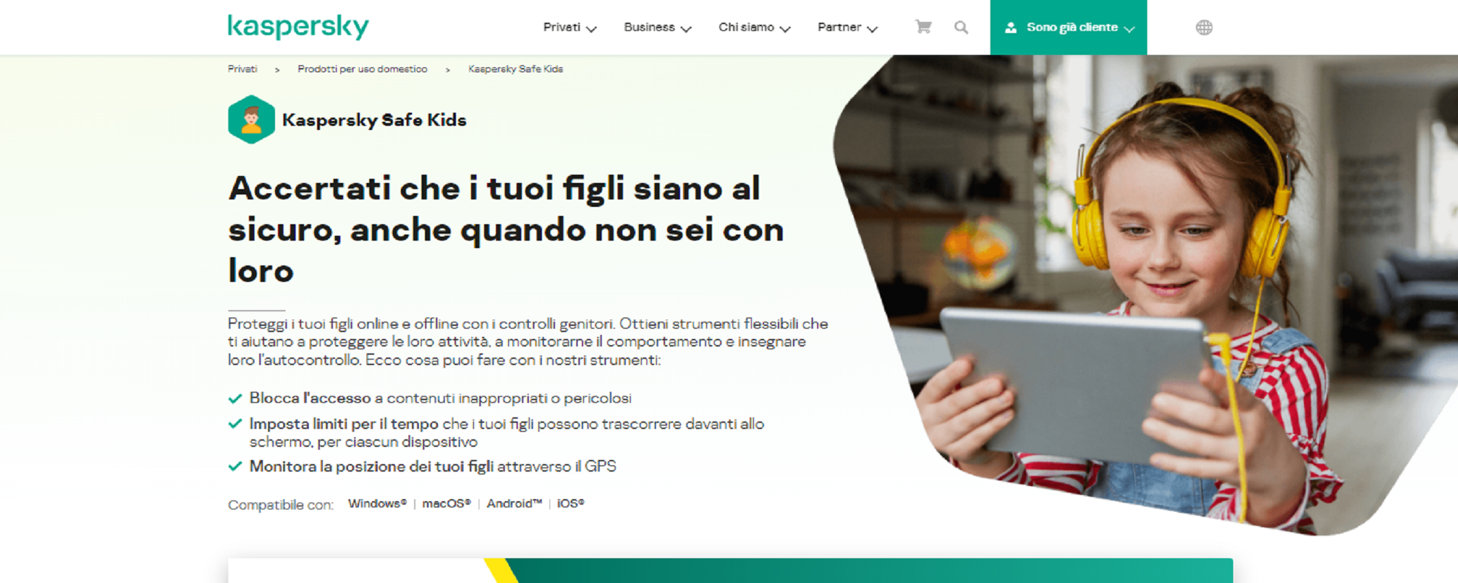 Ecco alcuni dei servizi offerti da Safe Kids di Kaspersky: