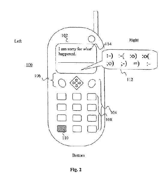 “Un metodo e un sistema di inserimento delle emoticon”, questa la sommaria descrizione del titolo depositato da Jonathan O. Nelson nel 2005 e assegnato nel 2007, quando le faccine erano già diffusamente entrate a far parte delle conversazioni mediate da schermo. L’idea dell’inventore, però, era di facilitarne l’inserimento con un tasto ad hoc nell’ambito della composizione di un testo: mostrando una serie di smiley già pronti, l’utente avrebbe colto con più facilità la possibilità di connotare i propri messaggi con un’emozione.