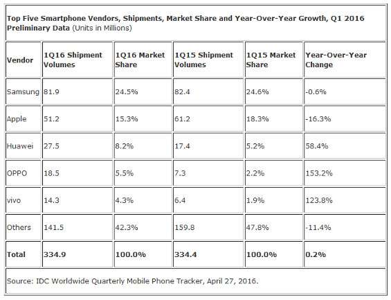 Quello che Samsung verosimilmente non potrà fare, come d’altronde Apple, è cambiare il corso discendente del mercato degli smartphone: secondo i dati preliminari di IDC nel primo trimestre dell’anno non c’è stata praticamente alcuna crescita nelle commercializzazioni (fatti salvi i risultati conseguiti da produttori come Huawei, OPPO e Vivo), una calma “piatta” che giustifica gli allarmi del settore sul business di Cupertino e sul futuro dell’intero comparto.