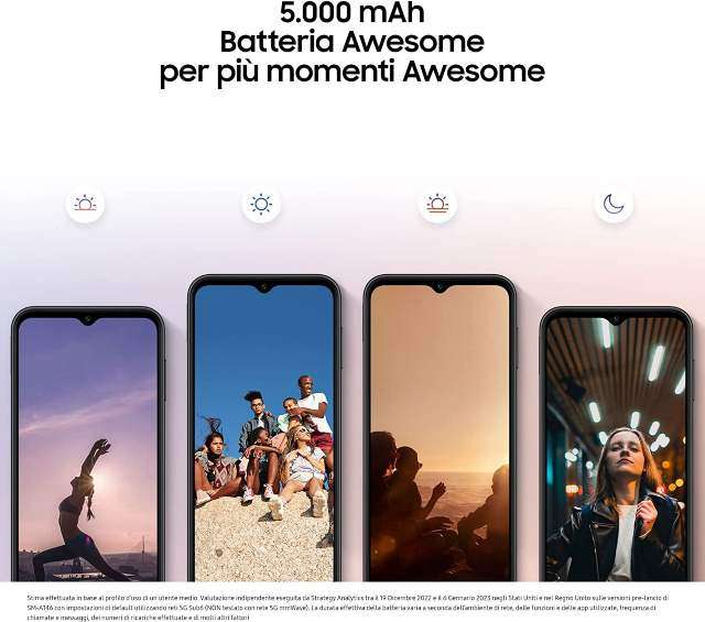 La batteria da 5.000 mAh del Galaxy A14 è pronta a seguirti ovunque tu vada. Con una capacità così ampia, potrai dedicarti alle tue attività preferite senza preoccuparti di dover ricaricare il telefono frequentemente. Avrai tutta l’energia di cui hai bisogno per restare connesso, giocare, navigare sul web e molto altro ancora.