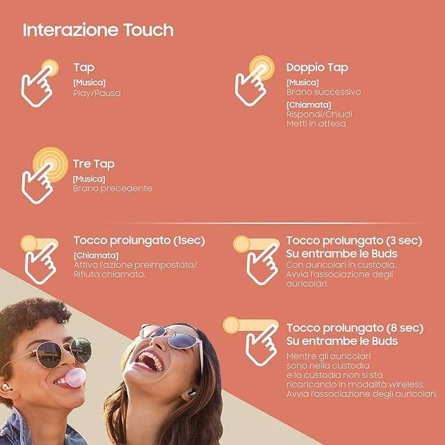 Il design è piuttosto compatto e leggero con una finitura a specchio unica, in questo caso nella variante nera. Il formato è decisamente compatto ed ergonomico, senza cuscinetti in-ear, che garantisce il massimo confort all’orecchio anche durante un utilizzo prolungato. I comandi, naturalmente, sono completamente touch e ti consentono di gestire praticamente qualsiasi funzione: tracce, chiamate, assistenti vocali e cancellazione del rumore. Non manca, infatti, l’ANC che ti permette di concentrarti completamente sulla tua musica eliminando qualsiasi disturbo ambientale. Non manca, naturalmente, l’integrazione con Bixby che ti consente di utilizzare l’assistente vocale di Samsung su qualsiasi smartphone. Dal punto di vista funzionale offre un ventaglio decisamente completo che saprà accompagnarti in ogni momento della giornata. Ciò che però spicca degli auricolari è chiaramente la qualità del suono offerta dalla tecnologia AKG.