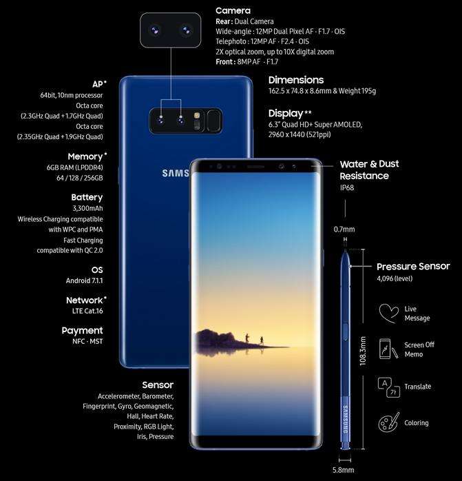 Samsung ha lanciato ufficialmente Samsung Galaxy Note 8, il suo nuovo dispositivo di punta dotato di pennino.