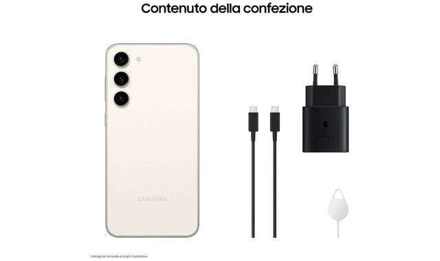 All’interno della confezione trovi anche il caricabatterie Samsung da 25W per permetterti di ricaricare il tuo Galaxy S23+ velocemente: ricorda comunque che la batteria ti assicura una lunga autonomia e sarà in grado di sostenerti per tutta la giornata.