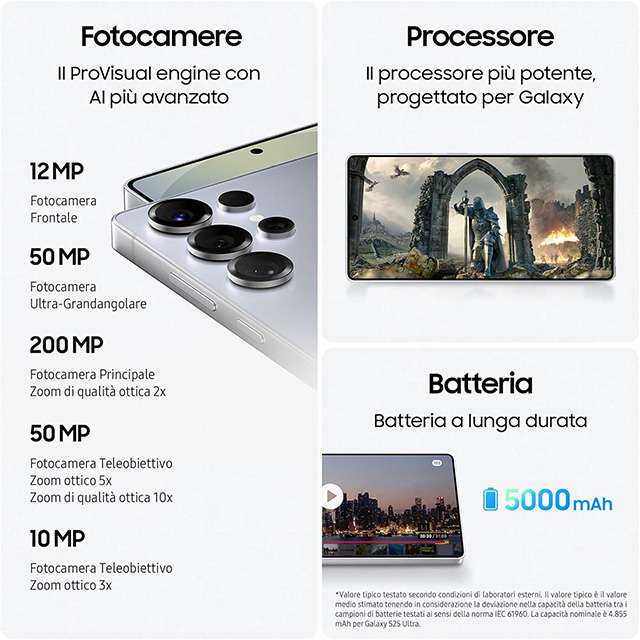 ![Samsung Galaxy S25 Ultra Smartphone AI, 3 anni di Garanzia del produttore, Display 6.9'' QHD+ Dynamic AMOLED 2X, Fotocamera 200MP, RAM 12GB, 512GB, 5.000 mAh, Titanium Gray [Versione italiana]](https://m.media-amazon.com/images/I/41y+lWcOFZL._SL500_.jpg)