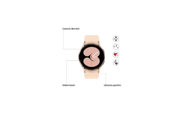 Con il Samsung Galaxy Watch4 40mm hai potenza, tecnologia e portabilità direttamente al tuo polso. Ogni componentistica è stata pensata e realizzata per essere funzionale e comoda. Dotato di display Super AMOLED da 1,2 pollici hai colori brillanti anche sotto la luce diretta del sole. Pesa solo 25,9 grammi e questo lo rende ancora più comodo e piacevole da indossare.
