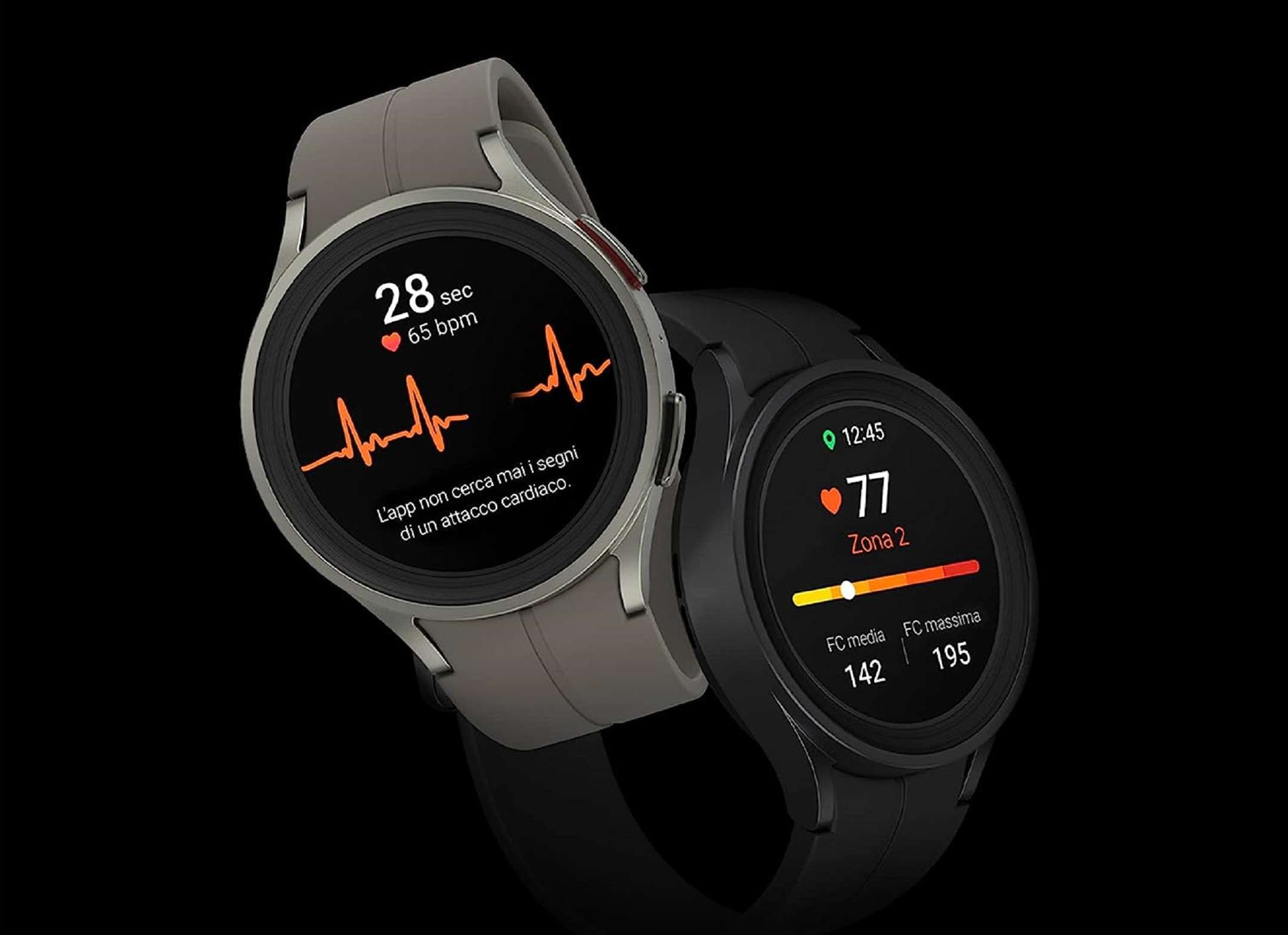 Con la sua cassa in titanio e display in cristallo di zaffiro, Samsung Galaxy Watch5 Pro è tutt’oggi uno degli smartwatch top di gamma più resistenti e belli da vedere grazie al design pulito, tanto sportivo quanto elegante. Due volte più resistente rispetto al predecessore, include sotto la scocca una batteria a lunga durata e un potente sensore bioattivo esclusivo che controlla frequenza cardiaca, salute cardiovascolare e avverte nel caso in cui individui pressioni sanguigne insolite.