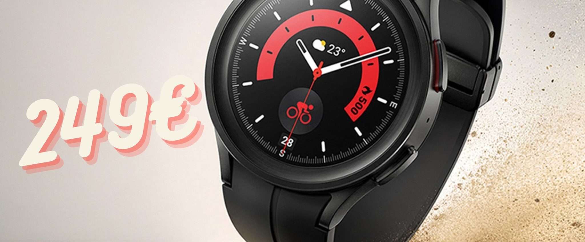 Giornalmente Amazon propone offerte incredibili e anche oggi non è da meno, anzi proprio questa è davvero pazzesca. Riguarda il bellissimo smartwatch Samsung Galaxy Watch5 Pro il cui prezzo di listino di 499 euro crolla a quota 249 euro con un risparmio di più di ben 250 euro pari a uno sconto del 50% tondo tondo. Il prezzo finale è il più basso di sempre sul web e nonostante non sia il modello più nuovo dello smartwatch targato Samsung, resta sempre un top di gamma.