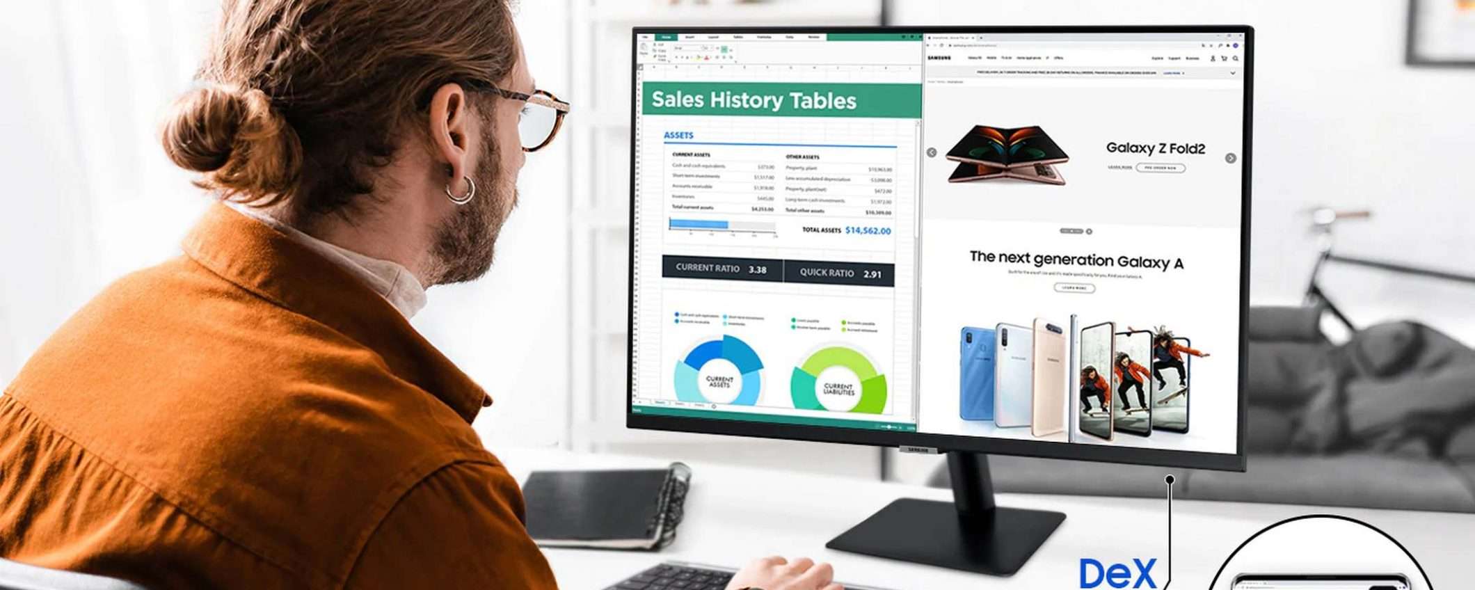 La funzionalità Automatic Source Switch Plus permette la selezione automatica dell’input in base al dispositivo collegato. Il monitor è in pratica una smart TV senza tuner DTT, in quanto il sistema operativo installato è Tizen. Gli utenti possono quindi utilizzare numerose app per lo streaming video tramite Smart Hub.