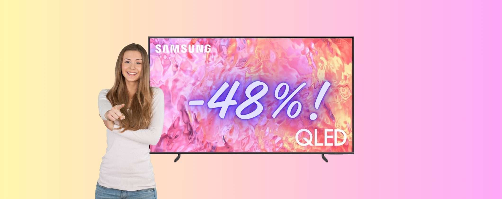 La fantastica Samsung TV QLED 4K da 55 pollici è in offerta speciale su Amazon proprio in questo momento. Visto il prezzo non sappiamo quanto durerà questa promozione. Infatti, sta già andando a ruba, presa d’assalto da tantissimi utenti che vogliono portare il cinema direttamente a casa loro. Tu cosa stai aspettando? Acquistala subito al 48% di sconto! Un prezzo così non si era mai visto prima. In prativa è un vero e proprio regalo. E se sei cliente Prime hai consegna gratuita e possibilità di pagare a rate con Cofidis.
