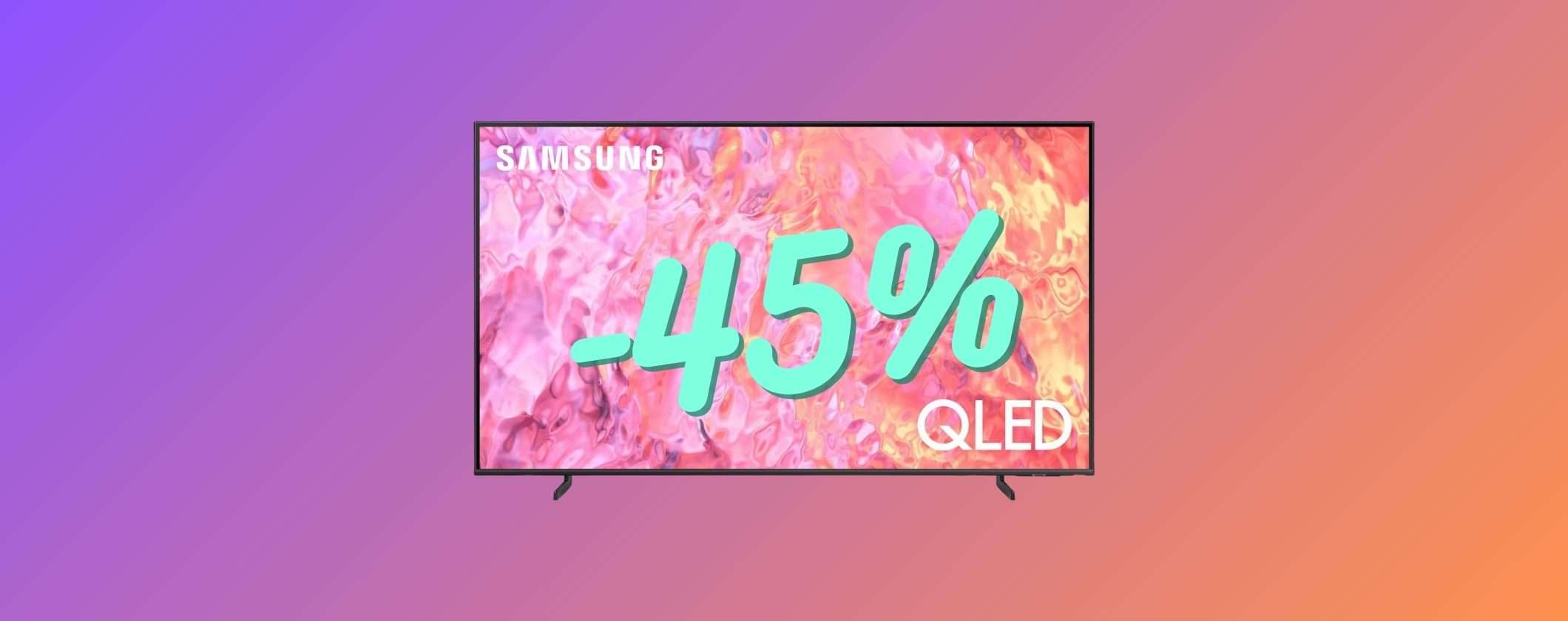 Acquista subito la Samsung TV QLED 4K 43″ al 45% di sconto. Quasi a metà prezzo ti assicuri un intrattenimento di estrema qualità. E se non sei iscritto a Prime, attiva la tuaprova gratuita di 30 giorni. Avrai accesso a tantissimi vantaggi tra cui prezzi bassi sempre, pagamenti a rate tasso zero (se disponibile), consegna e reso gratuiti, garanzia clienti Amazon, Prime Video, Amazon Music, Audible e tanto altro.
