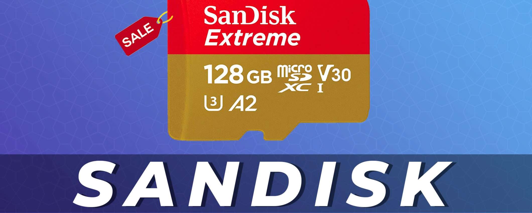 La scheda microSD SanDisk Extreme si trova in offerta su Amazon a 29,48€, con uno sconto del 55% che corrisponde ad un risparmio di oltre 36 euro rispetto al prezzo solito, nel taglio di memoria da 128GB.