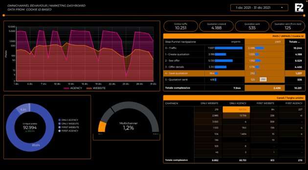 La sublimazione delle attività quotidiane in dati fruibili, e la successiva gestione degli stessi all’interno di dashboard che offrono una telemetria in tempo reale dell’azienda, consentono di accedere ad un ulteriore strumento per l’analisi dei clienti relativamente a preventivi, acquisti, spesa media, su ogni canale del loro percorso, sia online sia offline: “Attraverso ID univoci criptati è ora possibile segmentare clienti e prospect per comportamenti e per canali di acquisizione, ricostruendo le customer experience su ciascun canale, e abilitando azioni di marketing e modelli predittivi basati su dati reali e concreti“.