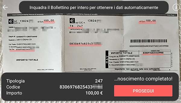 Viene così attivata la fotocamera del dispositivo in modo da poter inquadrare il bollettino nella sua interezza: è l’applicazione a individuare i dati utili per portare a termine il pagamento come la tipologia del documento, il codice, l’importo e così via, evidenziandoli in tempo reale sul display.